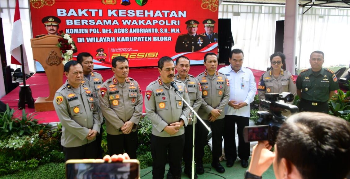 BLORA,ikagawanews.id – Komjen Pol Agus Andrianto hari melaksanakan bakti sosial dan bakti kesehatan di halaman Mapolres Blora Rabu (26/07).