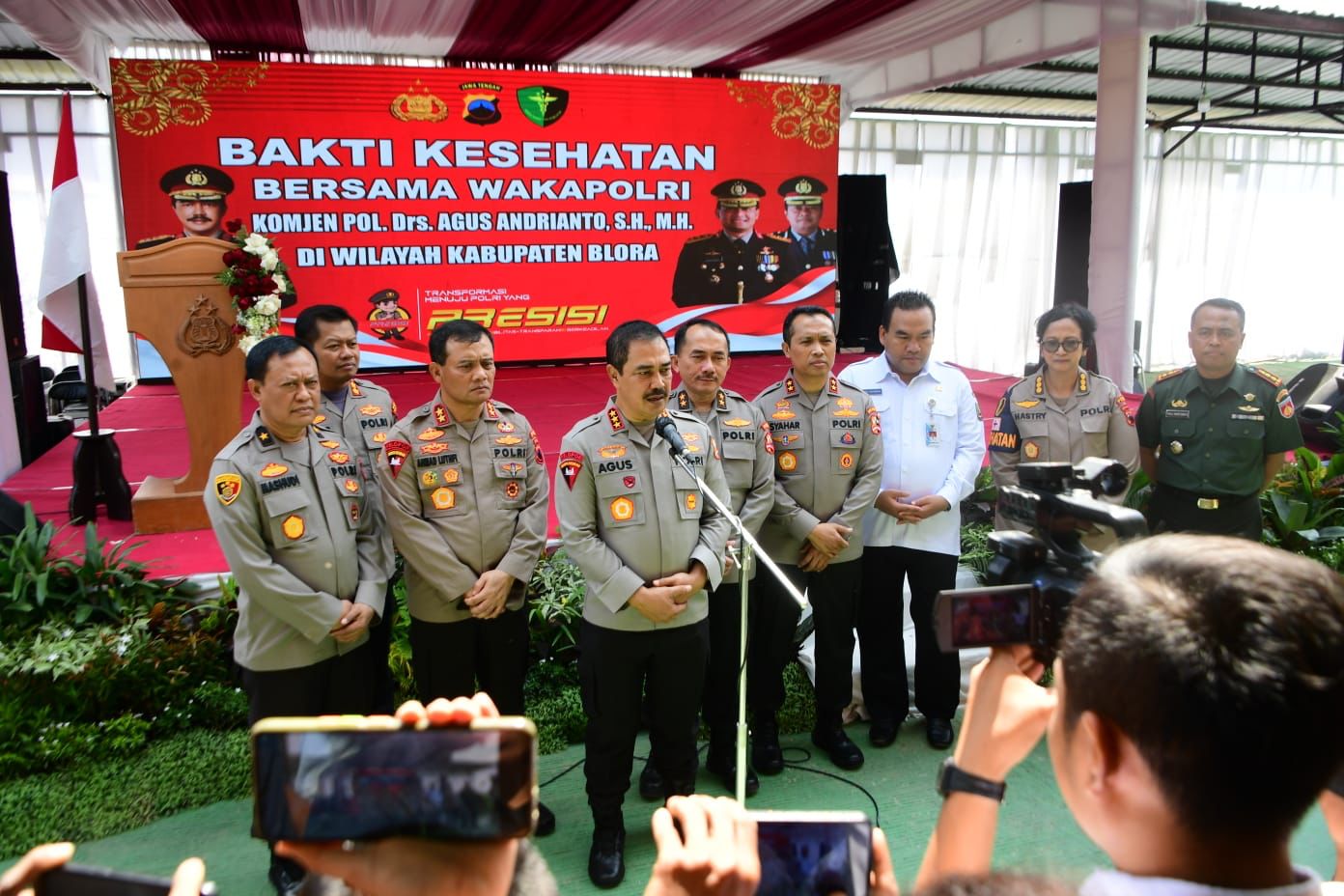 Turut hadir dalam kegiatan ini Kadiv Propam Polri Irjen Pol Syahardianto, Kapolda Jawa Tengah Irjen Pol Ahmad Luthfi, Kapusdokkes Polri Irjen Asep Hendradiana, Kapusiknas Bareskrim Brigjen Heru Dwi Pratondo, Kapusinafis Bareskrim Brigjen Pol Mashudi, Forkopimda Kabupaten Blora, Direktur Perbankan Brola, Direktur Pertamina Cepu.