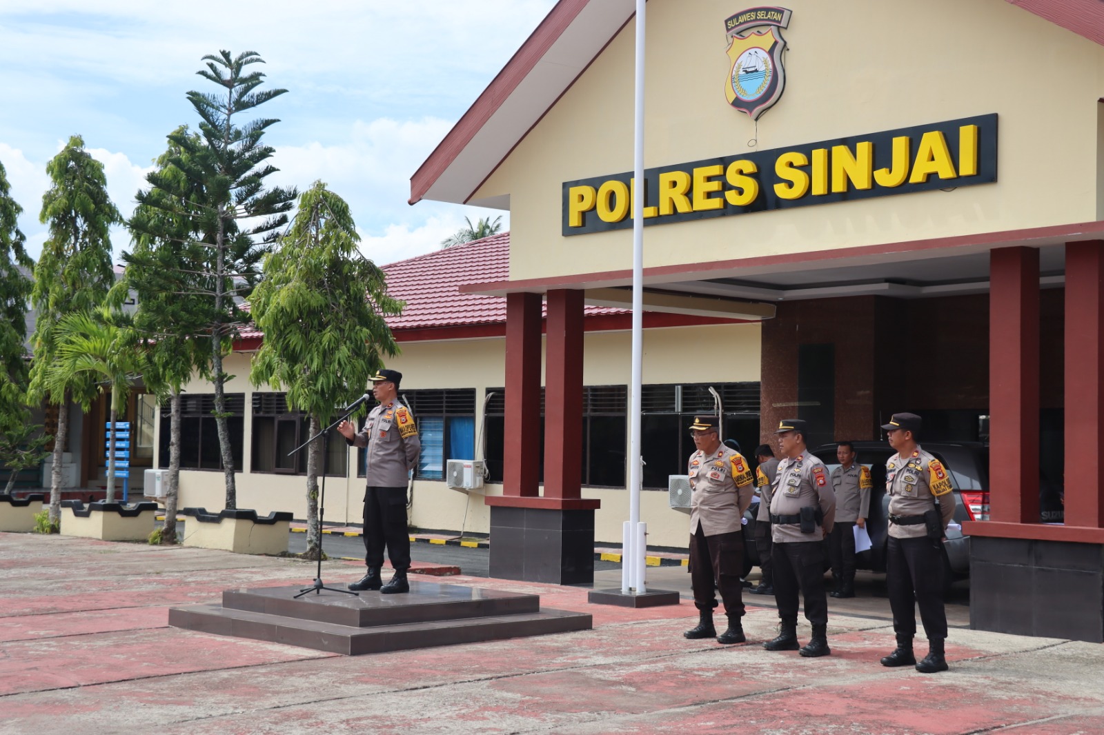 Apel dilaksanakan di halaman Mapolres Sinjai dihadiri oleh PJU dan perwira staf Polres Sinjai serta Kapolsek. Peserta apel terdiri dari Personel BKO Satuan Fungsi Polda Sulsel.