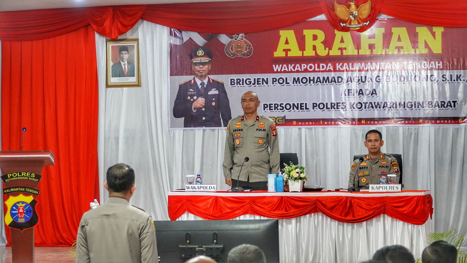 KOTAWARINGIN BARAT,ikagawanews.id – Wakapolda Kalteng BRIGJEN POL Mohammad Agung Budijanto,SIK.,M.Si melanjutkan kegiatannya di Polres Kotawaringin Barat dengan meninjau beberapa inovasi bidang Manajemen Operasional serta memberikan arahan kepada personel Polres Kotawaringin Barat di Aula Patria Tama 95,Kamis 16 Maret 2023.