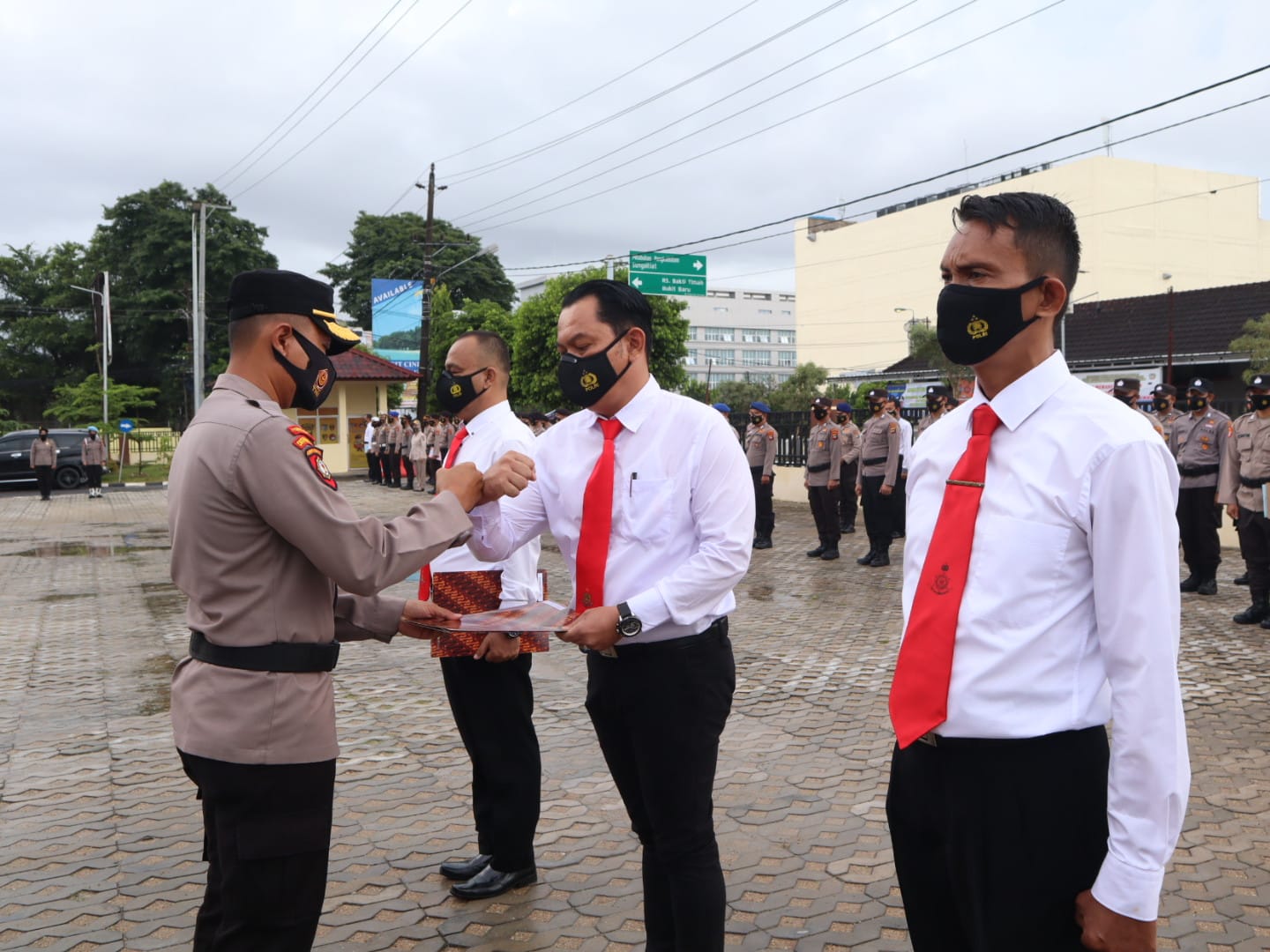 Kapolres Pangkalpinang AKBP Dwi Budi Murtiono, S.IK M.H melalui Wakapolres Pangkalpinang saat memberikan penghargaan mengucapkan terima kasih yang sebesar-besarnya kepada seluruh personil atas pengabdian dan kerja kerasnya selama ini.