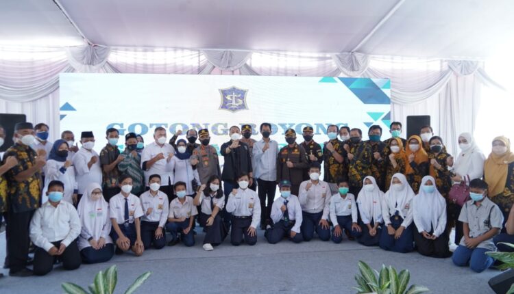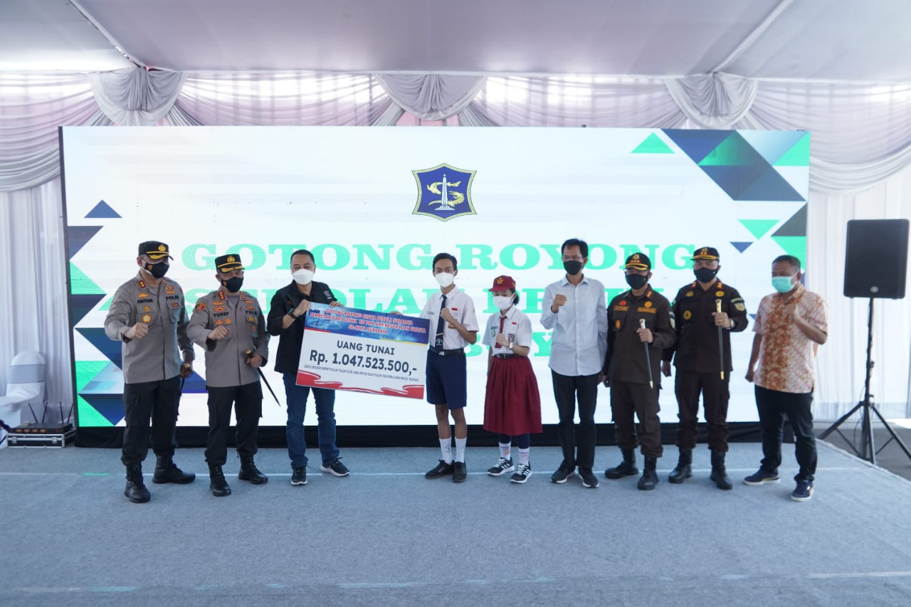 Kegiatan bertajuk Penyerahan Sumbangan Gotong Royong Sekolah Peduli Suroboyo ini diikuti siswa siswi sekolah dari jenjang SD, SMP dan SMA.