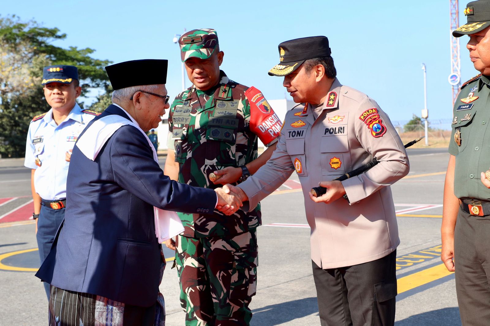 Kapolda Jatim Irjen Pol Toni Harmanto bersama Pangdam V Brawijaya turut mengawal hingga pesawat rombongan Wapres RI lepas landas bertolak kembali Jakarta.
