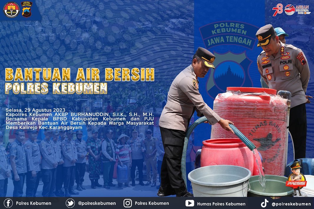 KEBUMEN,ikagawanews.id – Bersama dengan BPBD, dan TNI, Polres Kebumen menyalurkan bantuan air bersih kepada warga yang terdampak dari musim kemarau panjang.