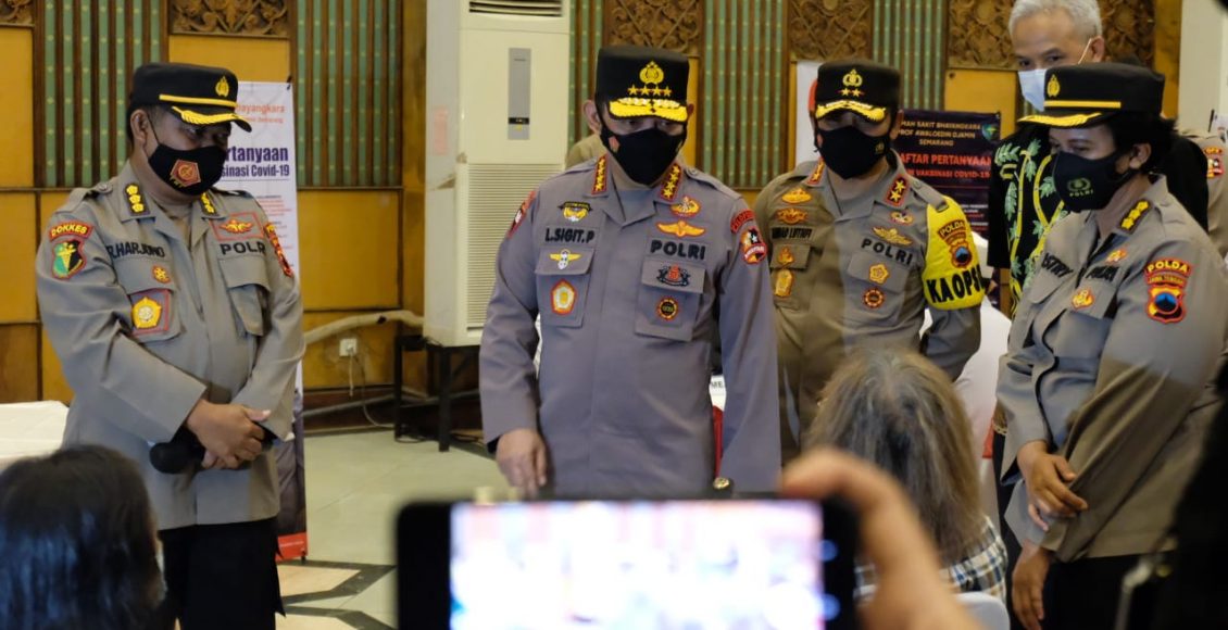 SEMARANG,IKAGAWANEWS.ID – Kapolri Jenderal Polisi Listyo Sigit Prabowo meninjau secara lansung proses vaksinasi Covid 19 bagi warga Semarang yang digelar di Masjid Agung, Semarang, Jawa Tengah, Rabu (24/3/2021).