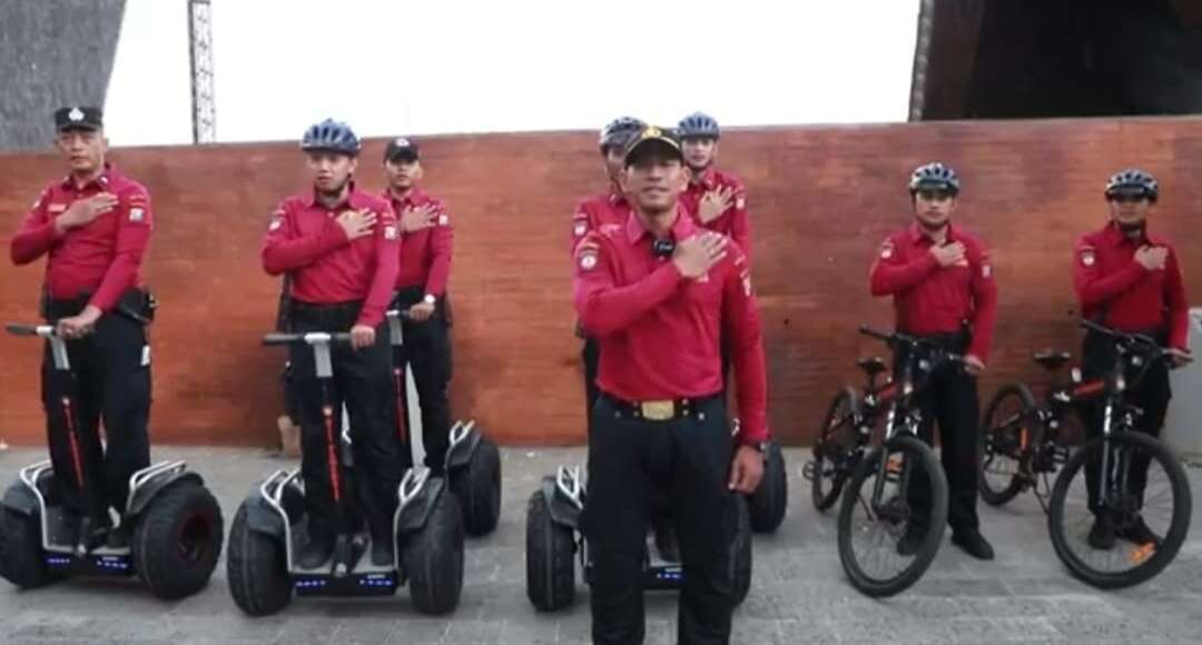 Personel Polisi Pariwisata dapat melakukan patroli dan sekaligus mengawasi situasi dengan bantuan sepeda listrik dan Sigway.