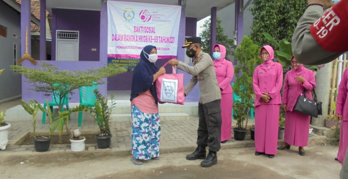 Cilegon,IKAGAWANEWS.ID – Sebagai wujud kepedulian terhadap sesama yang terdampak pandemi Covid-19 dan dalam rangkaian kegiatan menyambut Hari Kesatuan Gerak Bhayangkari Kapolsek, bersama Bhayangkari dan personil Polsek Cilegon Polres Cilegon Polda Banten melaksanakan pemberian bantuan sosial (Bansos). Jumat, (03/09/2021).