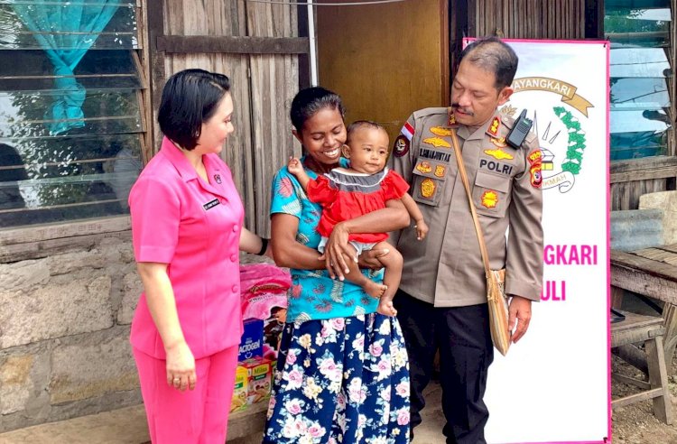 Wujud Peduli Sesama, Kapolres Belu Bersama Ketua Bhayangkari Salurkan Bansos untuk Balita Penderita Stunting