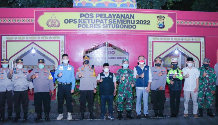 SITUBONDO, ikagawanews.id – Kapolres Situbondo AKBP Dr. Andi Sinjaya, S.H., S.I.K., M.H. bersama Forkopimda menyambangi anggota yang sedang berjaga di Pos Pengamanan dan Pos Pelayanan Operasi Ketupat Semeru 2022 pada Rabu (27/4/2022)