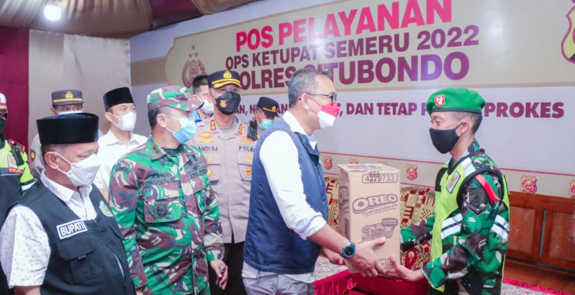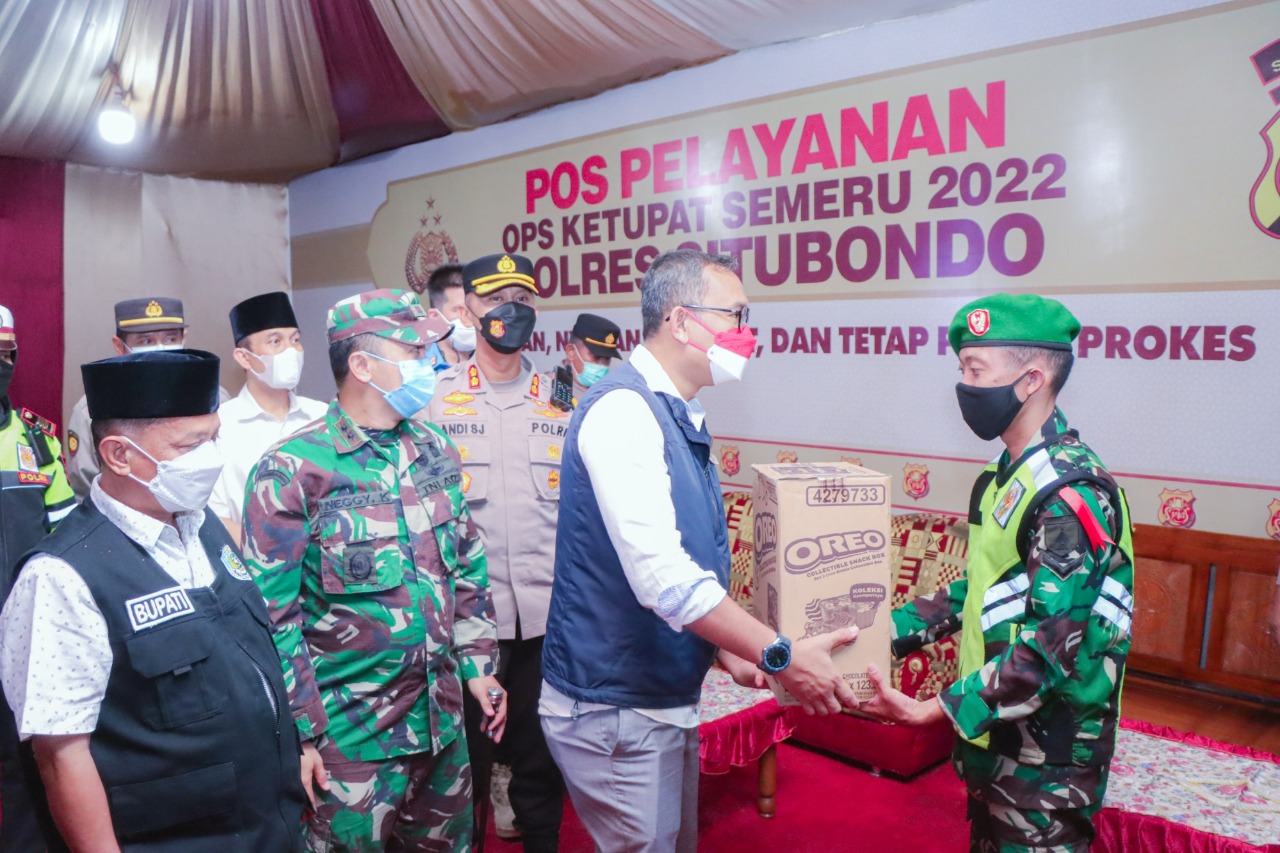 WUJUD PERHATIAN KEPADA ANGGOTA, AKBP ANDI SINJAYA DAN FORKOPIMDA SITUBONDO BERI BINGKISAN DI POS TERPADU KETUPAT SEMERU 2022