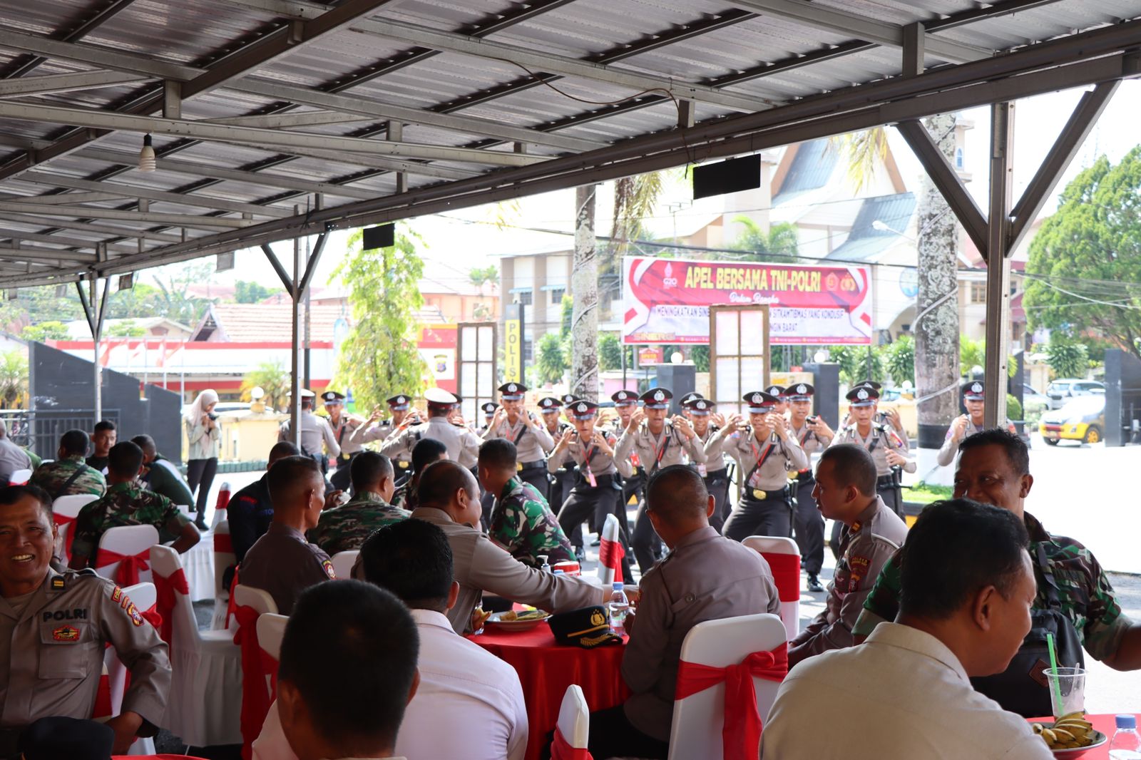 Sambil melaksanakan coffe morning, Kapolres beserta unsur TNI POLRI menyaksikan pertunjukan yel-yel Siswa Diktuba Polri Gel II TA 2022 yang melaksanakan Latja di Polres Kotawaringin Barat.