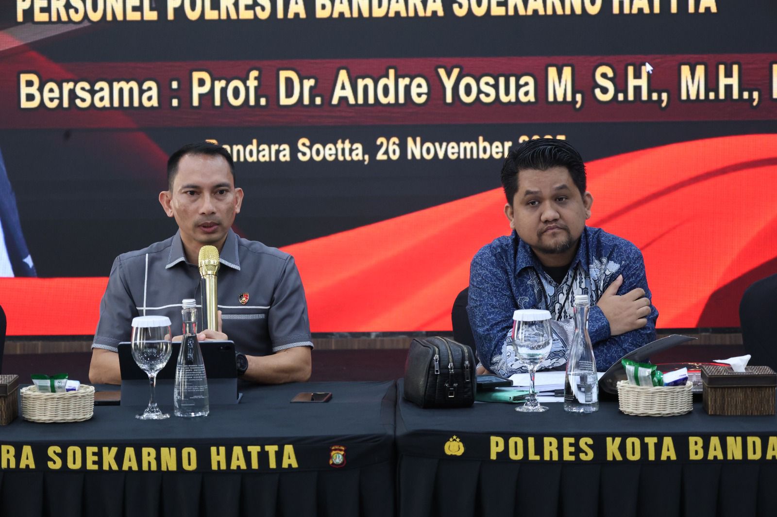 Kegiatan yang menghadirkan narasumber Prof. Dr. Andre Yosua M, S.H., M.H., M.A., Ph. D tersebut dihadiri oleh para personel dari Sat Reskrim dan Satres Narkoba Polresta Bandara Soekarno-Hatta.